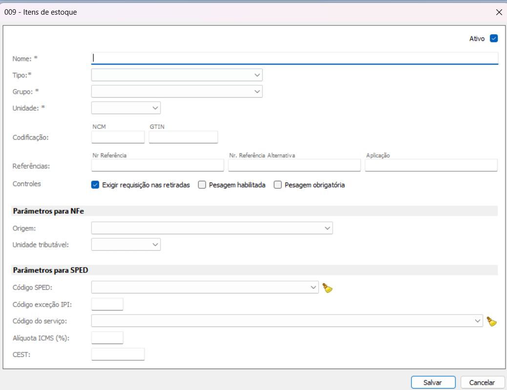 * Exigir requisição nas retiradas: Impõe a necessidade de uma solicitação oficial para retirar o item do estoque.